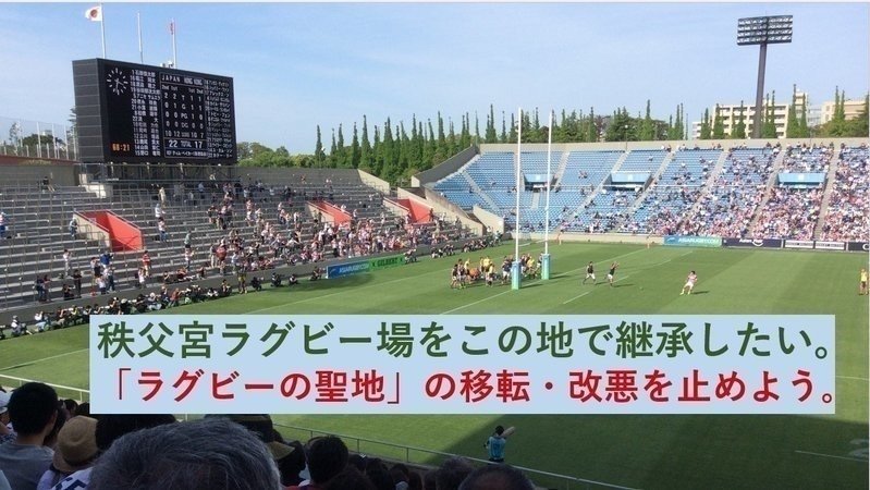 秩父宮ラグビー場をこの地で継承したい。「ラグビーの聖地」の移転改悪を止めよう。