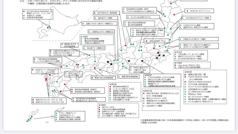 そしてその政策通り、現在、神宮外苑再開発を始めとして日本中で膨大な数のスタジアム、アリーナの建設が予定されています。