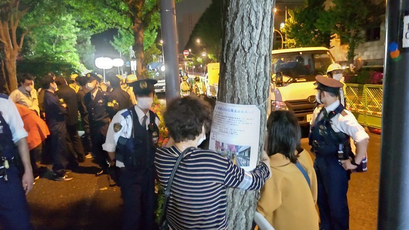 他の住民たちはフェンスの外で、やはり区職員や警官や警備に制止され、声をかけるしかありませんでした。