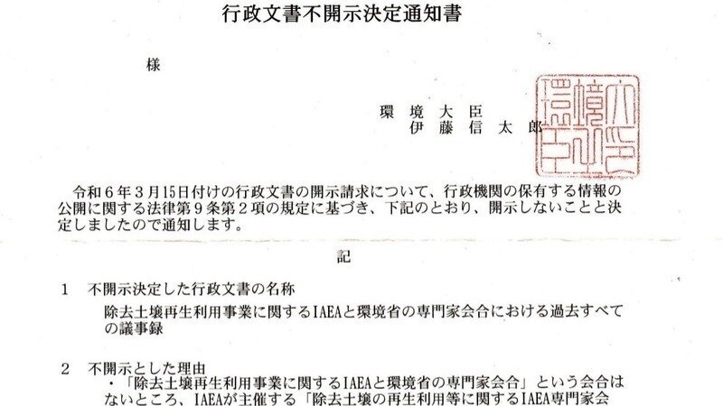 Petition update止めるなら今!あなたのまちに放射能汚染土がやってくる|Oppose "reuse" of contaminated soil that spreads radioactivity!「IAEA専門家会合」議事録への不開示決定通知がありました