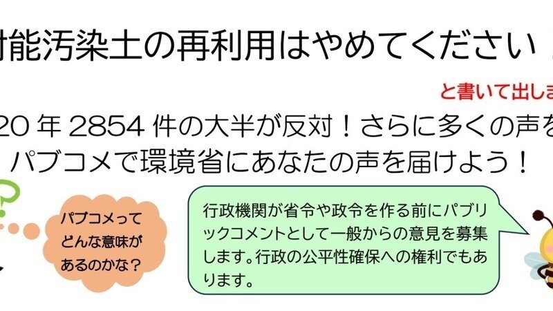 署名活動についてのお知らせ止めるなら今!あなたのまちに放射能汚染土がやってくる|Oppose "reuse" of contaminated soil that spreads radioactivity!パブコメを出そう「放射能汚染土の再利用を止めてください!」