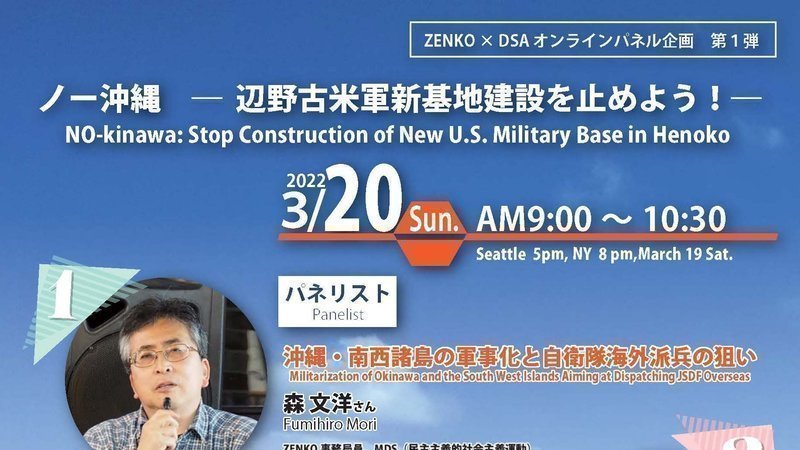 日本時間2022年3月20日(日)9時~(日本時間)既に過重に軍事化された沖縄諸島にさらに新たに進む米軍新基地建設を阻止するため緊急の行動提起にご参加を!