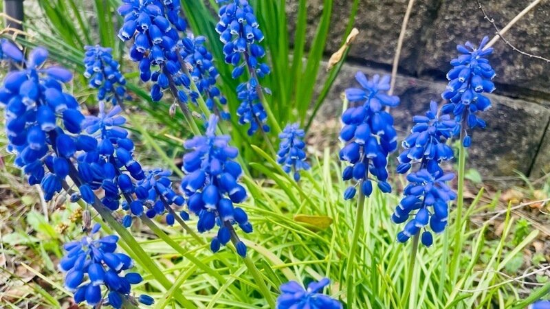 道ばたに咲くムスカリの青い花に、ふと足を止めました。花言葉は「通じ合う心」と「明るい未来」。