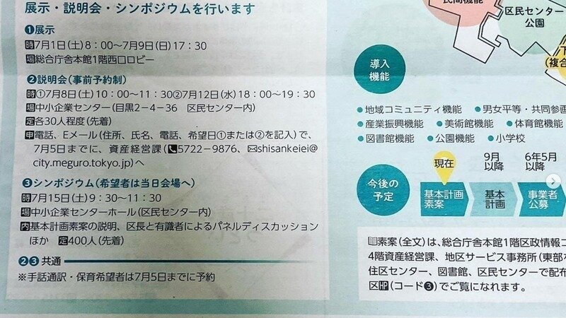 #目黒区民センター の大規模な再開発の広報資料が区民の家のポストに配布で配られました。パネル展示やシンポジウム、パブリックコメント募集もあります。美術館の取り壊しや屋外プールの廃止や70メートルビルの建設計画は意図的に詳しくは書かれていません。こちらより説明会などで取り上げて欲しいトピックを事前リクエストできます。