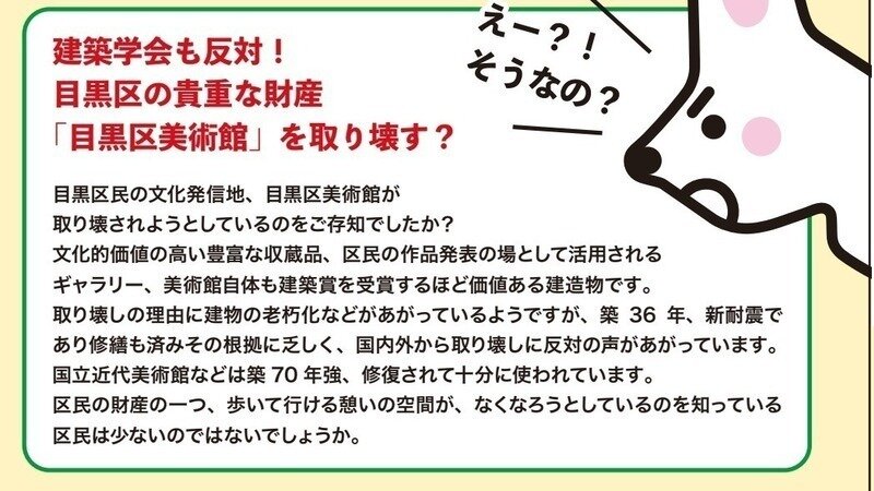 Обновление к петиции目黒区民センター公園プール美術館を一体とした再開発反対の署名をお願いします 敷地内50~70mビル反対 近隣区民にも情報公開を! 区の判断をストップ!新区長選挙で撤回を求む本日午後6時半よりZOOM視聴も含めた区民による再開発問題の勉強会開催です