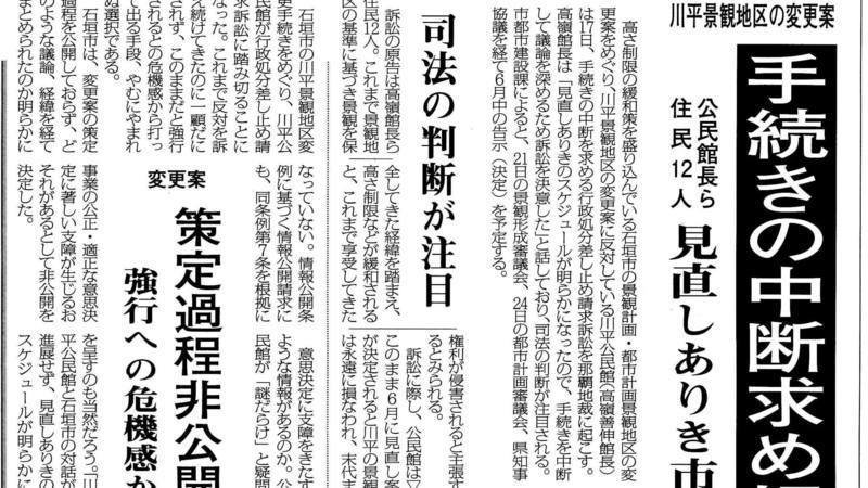 川平地域住民が、石垣市に対して続きの中断を求める行政処分差し止め請求訴訟を那覇地裁に起こします。