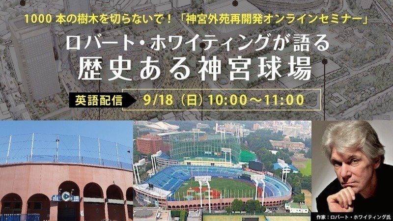 日本野球の専門家であり、『菊とバット』『和をもって日本となす』『イチロー革命』などの著書で知られる作家のロバート・ホワイティング氏が、多くの人に愛されている東京神宮球場の歴史について語るイベントに参加しませんか?