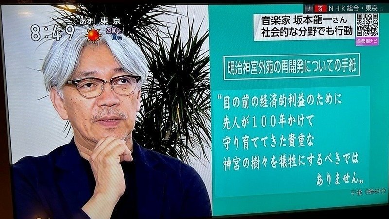 坂本龍一さんが、最後に声を上げたのは、神宮外苑をも守るためでした。再開発の見直しを求める手紙を、小池百合子都知事、文部科学相、文化庁長官、新宿区長、港区長に送ったのです。