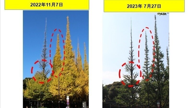 ② #イチョウの異変を無視した環境アセス のハッシュタグで、神宮外苑の枯れているイチョウの写真をシェアしましょう