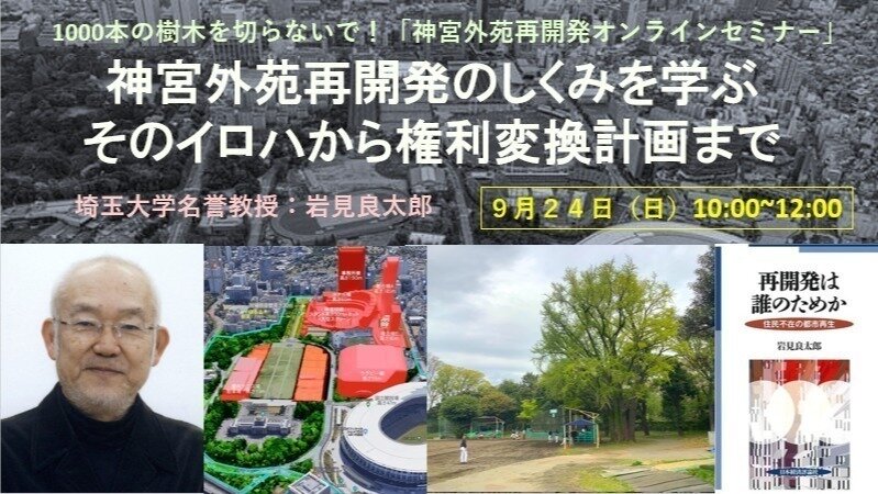 ①9/24:オンラインセミナー「神宮外苑再開発のしくみを学ぶ——そのイロハから権利変換計画まで」