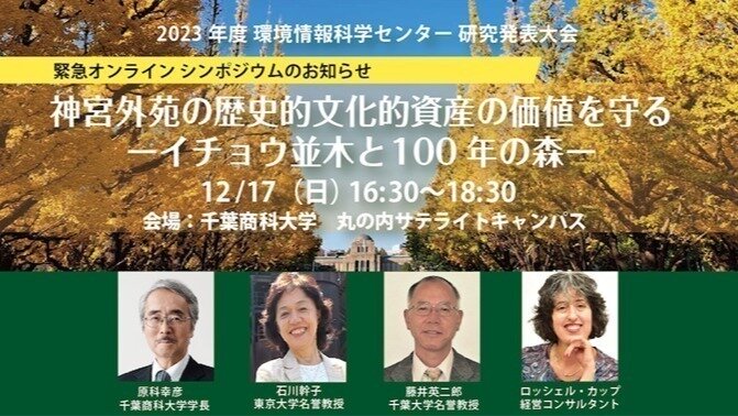 危機に瀕する神宮外苑の現在の状況と、この再開発問題の本質を広く伝え、理解を広めるべく、以下のシンポジウムを開催します。
