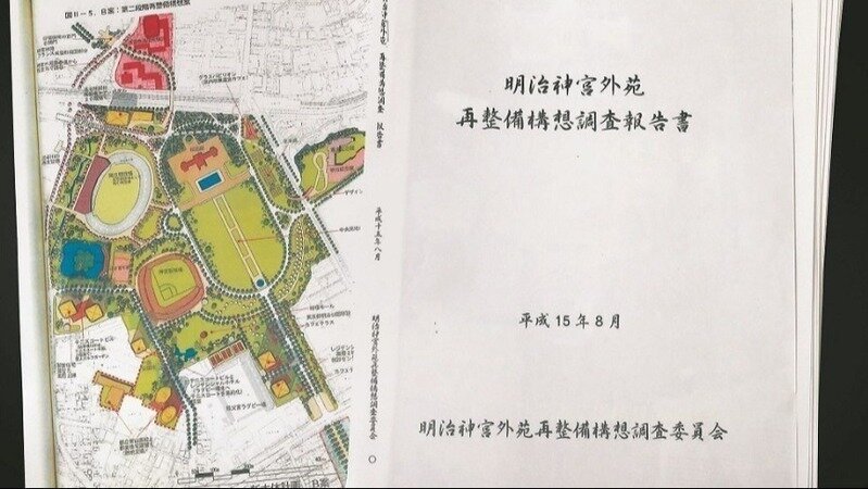 今から20年も前に、明治神宮の依頼を受け、都市計画や造園学の専門家の他、国土交通省のOBらが議論してまとめた整備構想案があったことがわかりました。「外苑の環境を壊さないよう、神宮の維持のための必要最小限の計画」であり、外苑の創建時のように、住民から行政までを巻き込んで事業を進める構想でした。
