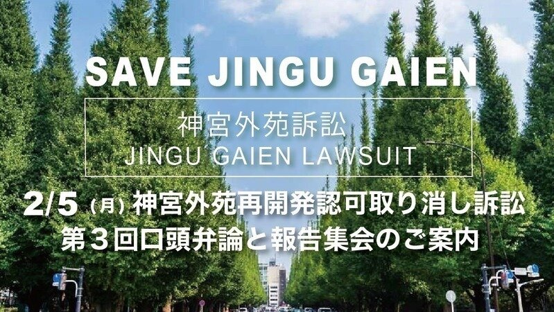 ①2/5神宮外苑訴訟第3回口頭弁論と報告集会のご案内