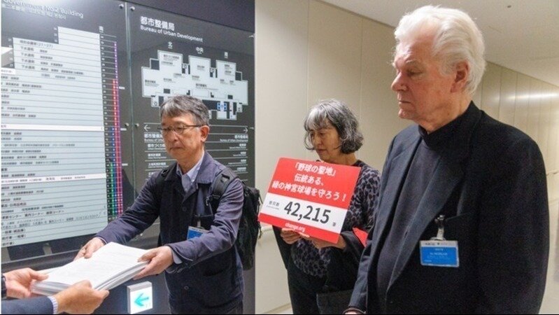 11月5日、作家ロバート・ホワイティング氏と「神宮球場に想いを寄せる市民の会」は、神宮外苑の環境を脅かす神宮外苑再開発の事業計画認可撤回、及び神宮球場の保存を求める要望書を、本署名4万のリストとともに東京都に提出しました。