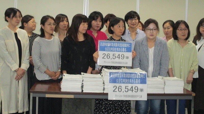 この電子署名に次いで、裁判の原告であるグリーンコープの設立母体の『グリーンコープ生活協同組合』(1府15県)でも、手書きによる署名が集められ、5月22日(水)に集約の確認が組合員理事さんたちによって、行われました。