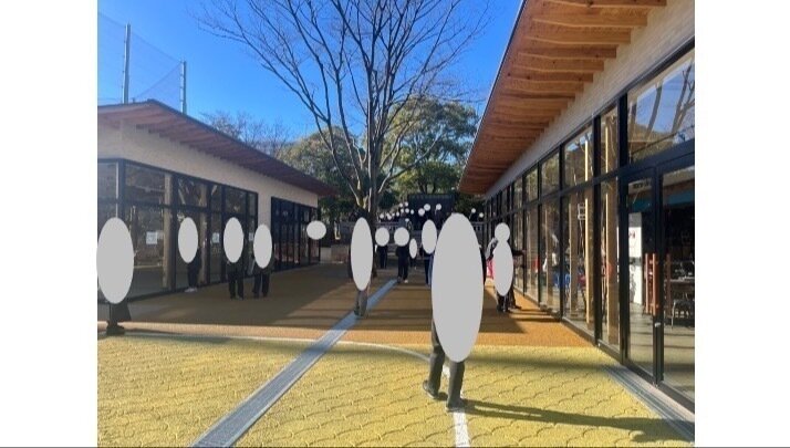 この写真の奥に大きな石碑があり、その上にいる人物たちの顔をマスキングしています(グレーの小さな丸)。このうち数人は大人ですが、他はこの東側広場をよく利用していた小学校中学年以上の学齢の子供たちです。リニューアル前は、子供たちはここからこの石碑の前に広がる広場に駆け降りて遊んでいました。しかしお店で広場は潰されてしまい、もう下に降りて遊ぶことはできません。