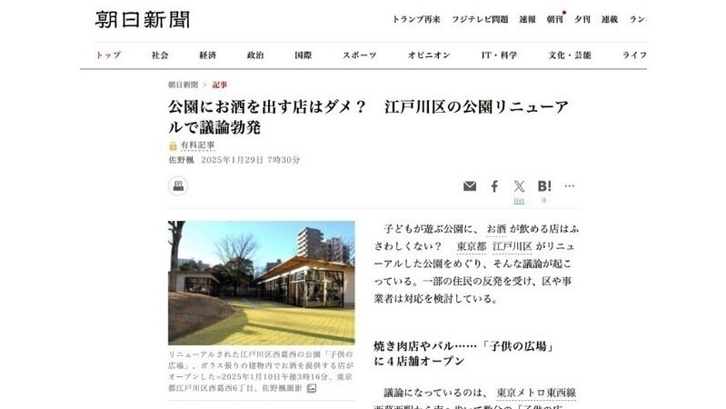 そんな中、1月26日の朝日新聞「東京 川の手」面に「子供の広場」の記事が掲載されました。紙面1ページの半分を割く大きさです。この記事は1月29日、有料デジタル配信もされました。