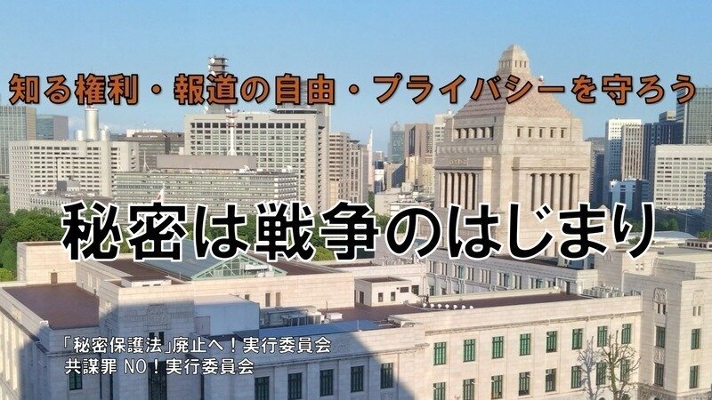 現在、国会審議されている経済情報秘密保護法で経済情報まで秘密とされたら、日本は秘密だらけの国になってしまいます。これ以上、市民の知る権利、報道の自由の侵害を許してはなりません。