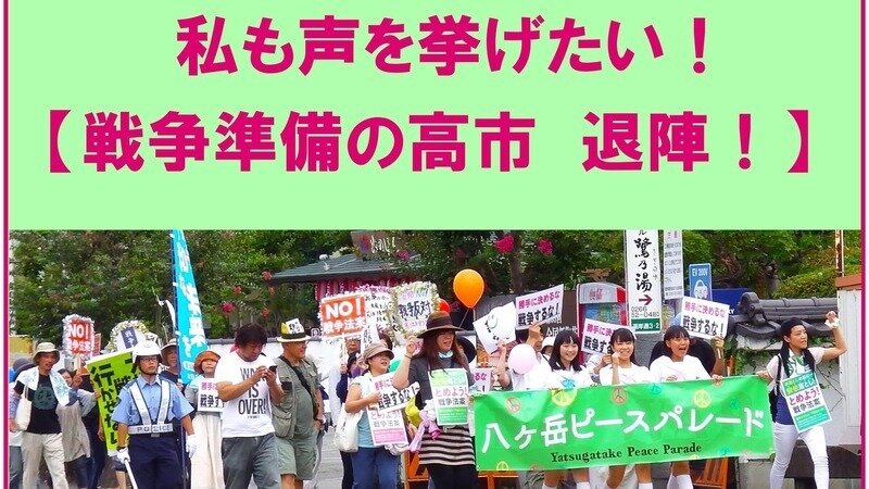 もうがまんできません、私も声を挙げたい!「戦争準備の高市 退陣!」