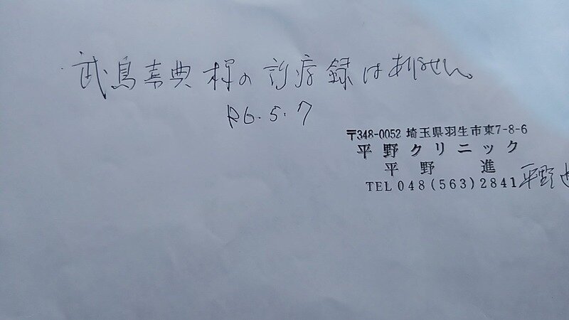 原告に対する取調べは、同日午前11時45分に終了し、同警察官らは、原告が机を殴った際に手を負傷していたことから、病院へ診療護送すべく、準備が整うまで第2取調室で原告を待機させ、診療護送を実施後、委託留置先である深谷警察署に原告を留置した。と民事裁判での準備書面に記載がありますが、ボクは病院に等行っていません。証拠として医師からカルテがないとの書面を預かりました。