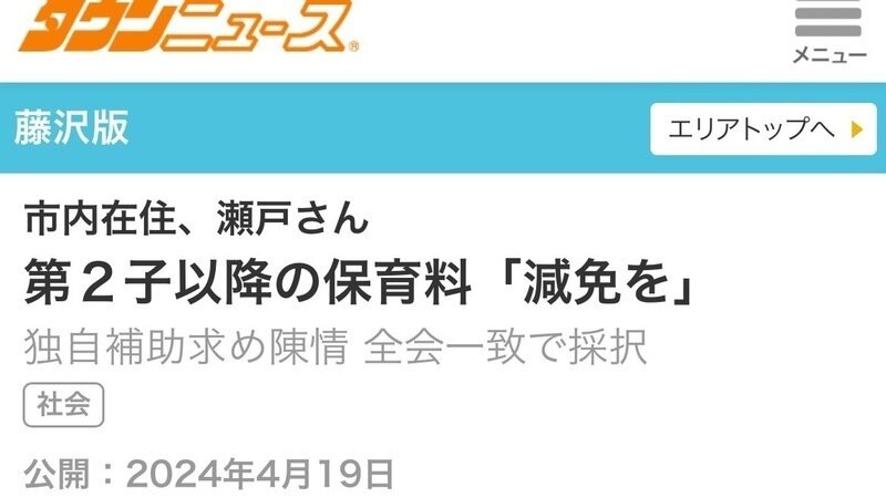 先日可決された議会陳情について、4/19(金)藤沢市のタウンニュースに掲載していただきました。藤沢市在住で新聞取られている方は昨日の朝刊に入っています。下記サイトより、ぜひご覧ください。