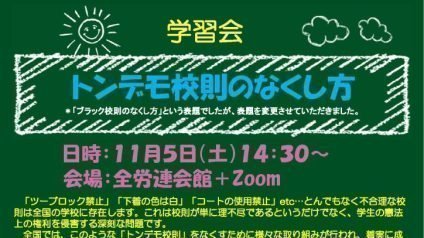 平素より#wlong の活動にご理解、ご協力をいただき誠にありがとうございます。さて、この度自由法曹団様主催の学習会「トンデモ校則のなくしかた」に登壇いたします。11月5日14:30より東京都文京区湯島2-4-4全労連会館にてZoomと併用で行われます。万障お繰り合わせの上お越しください。
