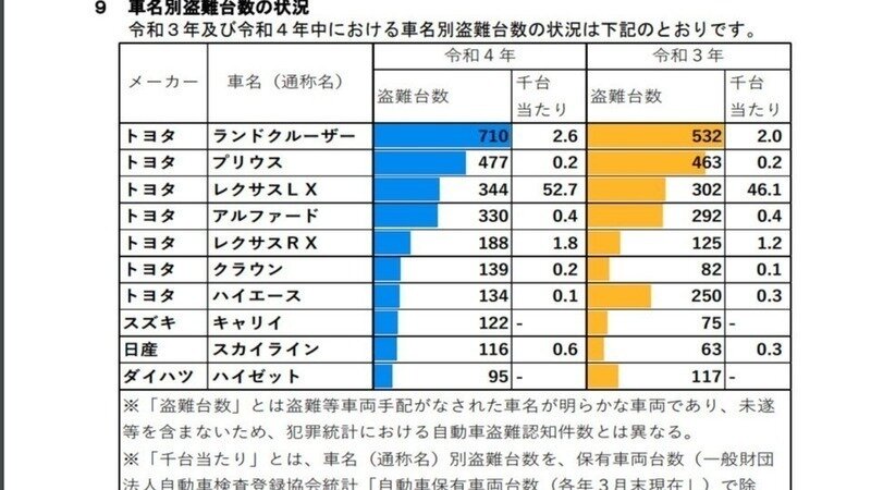 今まで明らかになっていなかった、盗難されやすい車種が10車種ですが、明らかになったことは、皆様の盗難対策のお役に立てるのではないかと思います。