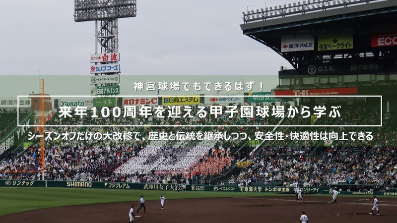 こうした改修事例は、甲子園同様100年近い歴史を有する神宮球場の未来を考える上で、大いに参考にできるものです。