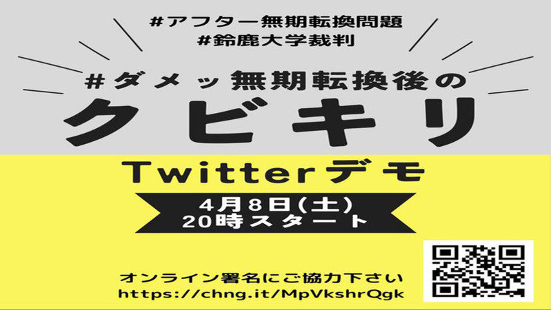 鈴鹿大学裁判に対する、そしてアフター無期転換問題について関心を持ってもらうため、オンライン署名を1筆でも増やすため、第二回ツイッターデモを行いたいと思います。是非、みなさまの力をお貸しください。