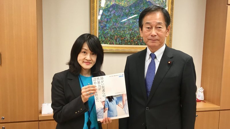 署名が求める「性犯罪被害者としての障がい児者」の概念を盛り込むために、国会議員に調査報告書を持参し、現状を説明しています。