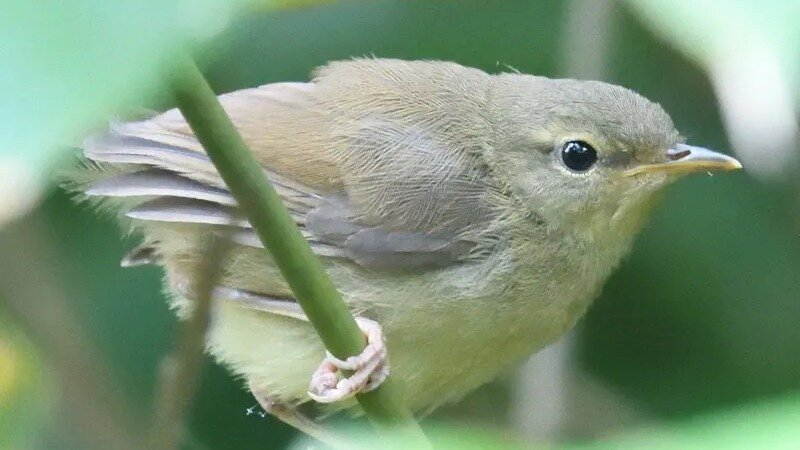 (写真は巣立ったばかりのウグイスのひなです。今年も多くのウグイスのヒナがこの竹林から巣立ちました。今は親から独立し、自分で餌探しやさえずりの練習をしています)