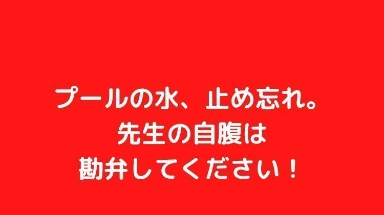 プールの水、止め忘れ。先生の自腹は勘弁してださい!