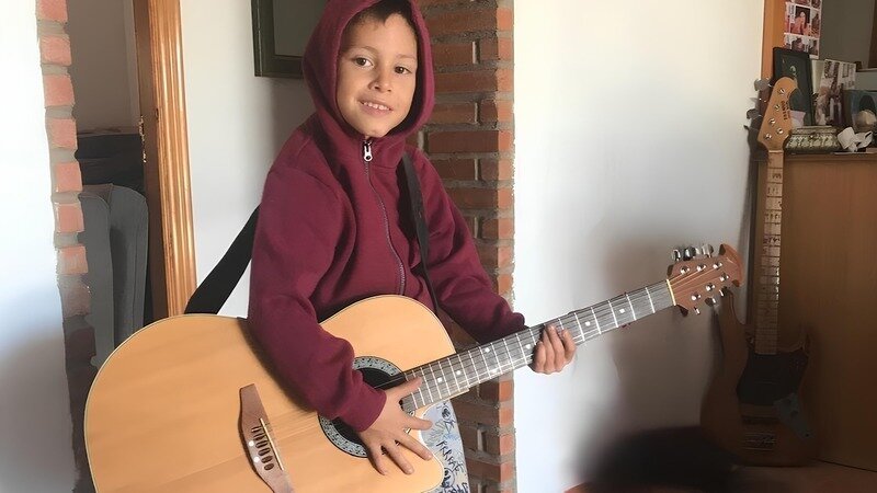 ¡Sí, él amaba esa guitarra! ¡Y también tocaba la eléctrica! 🎸 Su alegría iluminaba la habitación y, aunque quizás aún no era Jimi Hendrix, ¡quienes lo escuchaban no podían evitar sonreír! 😀