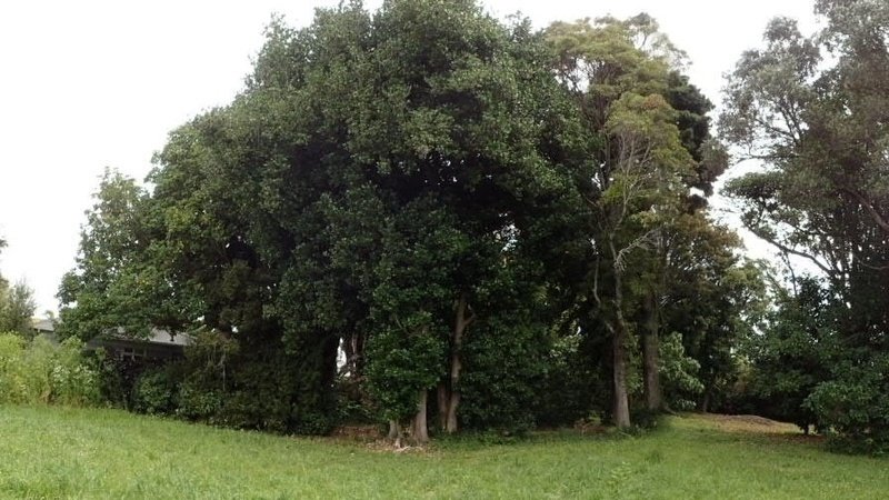 Central copse of Karaka, Titoki, Pohutukawa and Puriri; all 15 - 20m high.