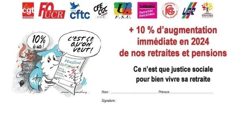 + 10 % d’augmentation immédiate en 2024 de nos retraites et pensions