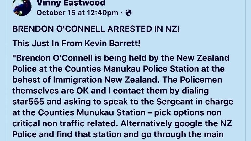 Saga of the Oz Avenger continues, upon arrival in New Zealand Brendon O’Connell was arrested and imprisoned by law enforcement officers. Brendon has no contact from inside his jail cell. At this time a new Facebook page has been created @BrendonsFriends for friends of Brendon to connect. His legal team is diligently working on his case.