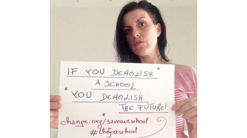 “If you demolish a school, you demolish the future! I take a stand for the 170 children that go to #TheTyreSchool in #Palestine. @antonioguterres @netanyahu @RamiHamdalla #SaveOurSchool http://change.org/saveourschool