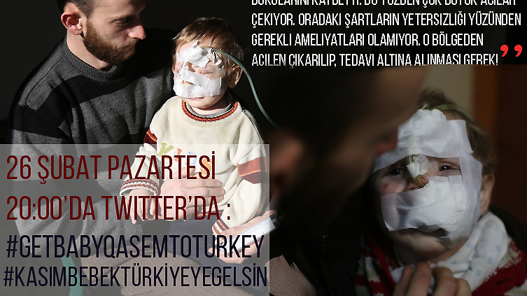 Atualização do abaixo-assinado2 yaşında bombalanarak yüzü parçalanmış Kasım bebeğin tedavisi (Baby Qasem's treatment)26 Şubat Pazartesi 20:00'da Kasım bebeğin yanında ol! #GetBabyQasemToTurkey