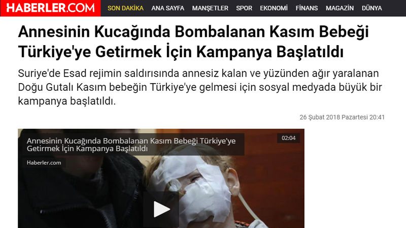 Actualización de la petición2 yaşında bombalanarak yüzü parçalanmış Kasım bebeğin tedavisi (Baby Qasem's treatment)Kasım bebek için 26 Şubat'ta yapılan Twitter etkinliğimiz haberlere çıktı! #GetBabyQasemToTurkey