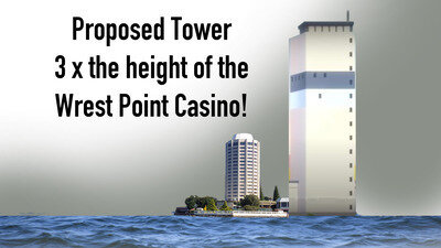 If this venture goes ahead under the questionable banner of "green energy", a 200m x 50m x 50m tower will be built, plus accompanying 30-50m high buildings. The tower will be nearly three times the height of Wrest Point Casino, which is 76m in height. Meanwhile, we residents have trouble getting approval to build a shed or granny flat on our own private land...