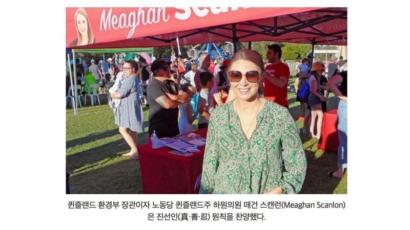 퀸즐랜드 환경부 장관이자 노동당 퀸즐랜드 주 하원의원 매건 스캔런는 수련생들의 테이블에 와서 이야기를 나눴다. 그녀는 코로나19로 힘든 한 해를 보낸 후 다양한 커뮤니티 그룹이 다시 모인 것을 반가워하며, 중국의 박해에 대해 사람들에게 계속 이야기하고 있다는 사실에 기뻐했다. 그녀는 “파룬궁은 지역 사회에 중요하다. 이 어려운 해에 진선인(真·善·忍) 원칙은 사람들이 따라야 할 보편적 가치다.”라고 했다.