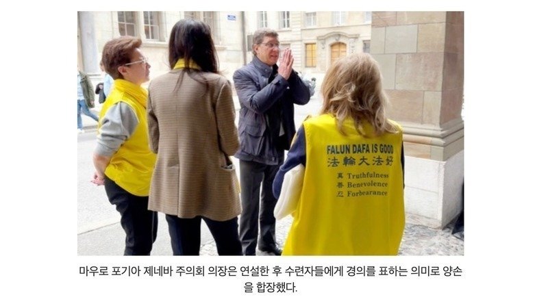 제네바 주의회 의장 “당신이 하는 일은 정당합니다”