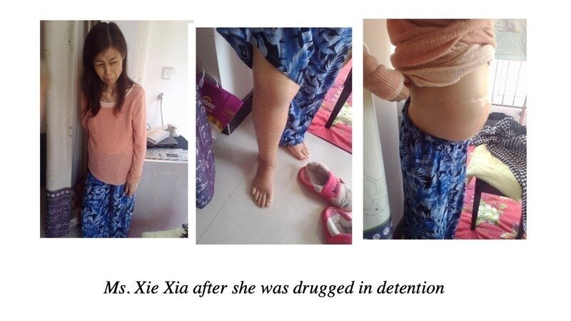 When Ms. Xie was released in early August 2013, her legs were swollen and her lower abdomen was bloated. She told her family that the brainwashing center guards laced her food with unknown drugs and also injected her with unknown drugs. Only when she was in serious condition did the guard release her. She knew that a practitioner who was given a toxic shot at the brainwashing center passed away shortly after she was released.