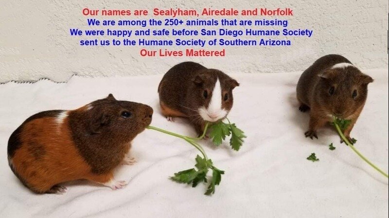 "Our names are Sealyham, Airedale, and Norfolk. We are a trio of brothers and kind people from SDHS say we were always so much fun. 318 animals were shipped from San Diego Humane Society to Humane Society of Southern Arizona. We are among the 250+ animals that are missing. No one can account for our whereabouts but Colten Jones admitted to taking us and our friends. Colten Jones is not a rescue, he breeds pythons and and sells animals like us to feed alive and frozen to reptiles.