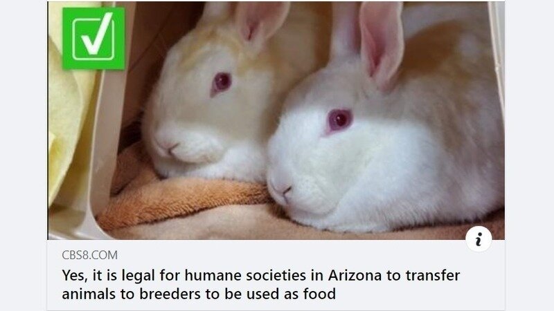 While this story screams propaganda - CBS 8 appallingly tells the world it is legal for humane societies in Arizona to transfer animals to breeders to be used as food with no reference to the law they seem to be quoting. According to CBS 8's irresponsible reporting is it now a free for all for humane societies to also send kittens, puppies and basically any animal to snake breeders as food?