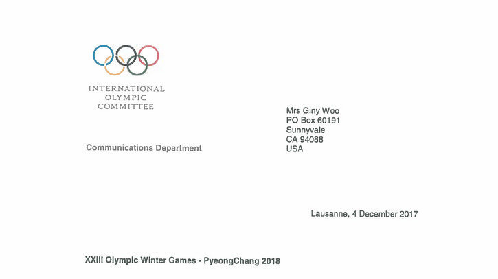 In response to the petition signatures package we mailed to the International Olympic Committee, they sent us a letter. This is the same one we received previously. Click here to learn more.