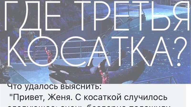 Посетители заметили, что в последнюю предновогоднюю неделю в специальном праздничном шоу выступает только две косатки - Норд и Джельетта. Это легко подтвердить через социальные сети, просмотрев публикации посетителей под хештегами #москвариум #затерянныймир #косатки . На одном из выступлений Нарния все же появилась на несколько минут, но только в начале шоу, а затем уплыла. Это говорит о том, что она хотя бы жива. Обзорная площадка, где можно смотреть за косатками через стекло - закрыта. Москвариум утверждает, что с косатками все хорошо, но некоторые источники утверждают, что Нарния на карантине, и причина тому - проблемы с желудком. По информации, Нарния наелась изолирующий пленки в бассейне, и теперь ее извлекают из желудка косатки. Почему представители Москвариума продолжают говорить людям, что животное просто отдыхает? Учитывая то, что сейчас новогодний аншлаг представления «Затерянный мир» и все три косатки ( Нарния, Норд, Джульетта) выступили вместе в начале праздников, очень подозрительно, что в самый разгар праздников только одна Нарния «отдыхает», а Норд и Джульетта продолжают выступать?