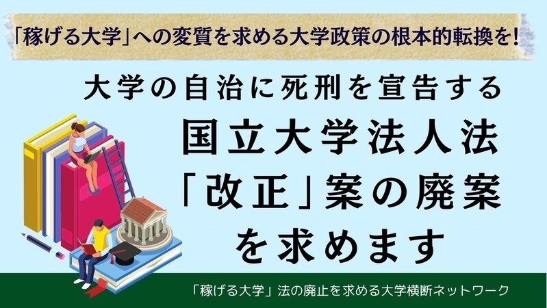 今国会に提出された「国立大学法人法の一部を改正する法律案」の廃案を求める新しい署名を開始しました!