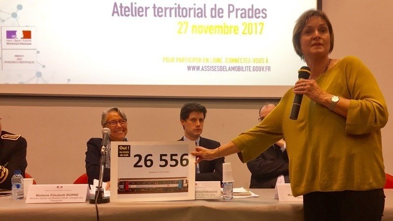 2/ La pétition de plus de 26000 signatures a été remise le 27 novembre à la Ministre des Transports lors des Assises de la Mobilité (voir photo). Continuons à faire signer pour dépasser les 30 000 signataires ! Vous pouvez d'ores et déjà aller plus loin en envoyant un message directement à la Ministre (c'est en 2 clics) :