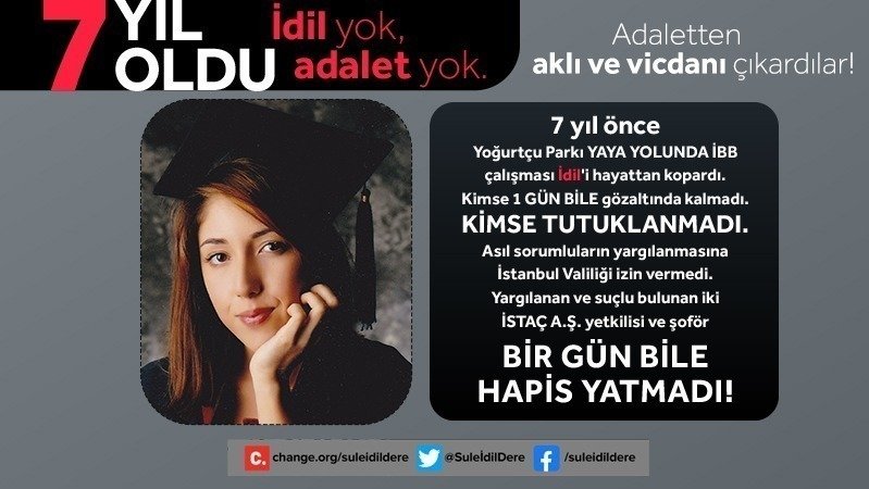 İdil'i 7 yıl önce 12 Mayıs günü Kadıköy Yoğurtçu Parkı YAYA YOLUNDA İBB ve iştiraki İSTAÇ A.Ş. çalışması hayattan kopardı.